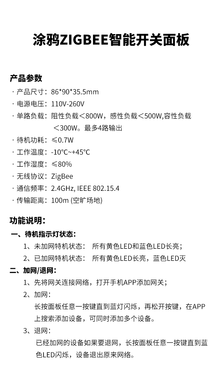 涂鴉Zigbee智能開關(ZS3L M系列)