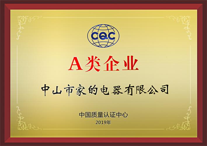 2019年8月28日,家的公司被CQC(簡稱中國質量認證中心)評為A類企業!