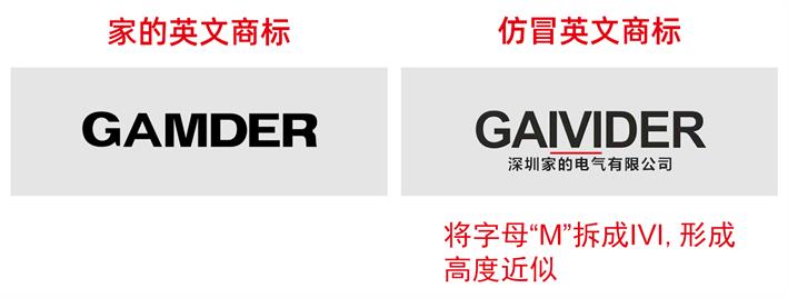據(jù)家的開(kāi)關(guān)合作客戶反映,消費(fèi)者疑似購(gòu)買(mǎi)到打家的開(kāi)關(guān)品牌“擦邊球”的產(chǎn)品。家的公司經(jīng)過(guò)詳細(xì)調(diào)查,發(fā)現(xiàn)該現(xiàn)象屬實(shí)。“家的開(kāi)關(guān)品牌英文商標(biāo)為‘GAMDER’,仿冒商標(biāo)名為‘GAIVIDER’,差別僅在于將字母‘M’拆分成‘IVI’,產(chǎn)品的外包裝還印有“某某家的電氣有限公司’。