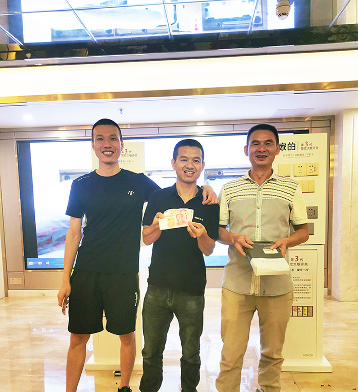 聽了區(qū)域經(jīng)理黃堯濤的精彩演講,水電工師傅們對第3代復位大板開關(guān)給予認可。他們經(jīng)常安裝開關(guān)插座,也都認同:傳統(tǒng)翹板開關(guān),無論是在打開或關(guān)閉時,按鍵總有一頭翹起,欠美觀。而第3代復位大板開關(guān),屬于純平復位結(jié)構(gòu),開關(guān)與插座始終同平同高,顯得更平整、協(xié)調(diào)、美觀。這有利于提升用戶的滿意度。專利復位技術(shù),SA3級金屬噴砂工藝,真材實料等,也是大家欣賞第3代復位大板開關(guān)的亮點。