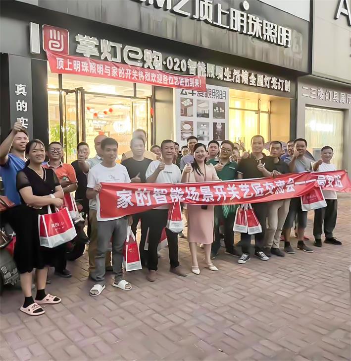 會議主要由森澤國際建材城國輝燈飾盧總、家的工廠龐經理及竣榮公司張經理組織。藝匠師傅們按時到實體門店簽到,為家的第3代大板開關代言,成為國輝燈飾城市服務合伙人。