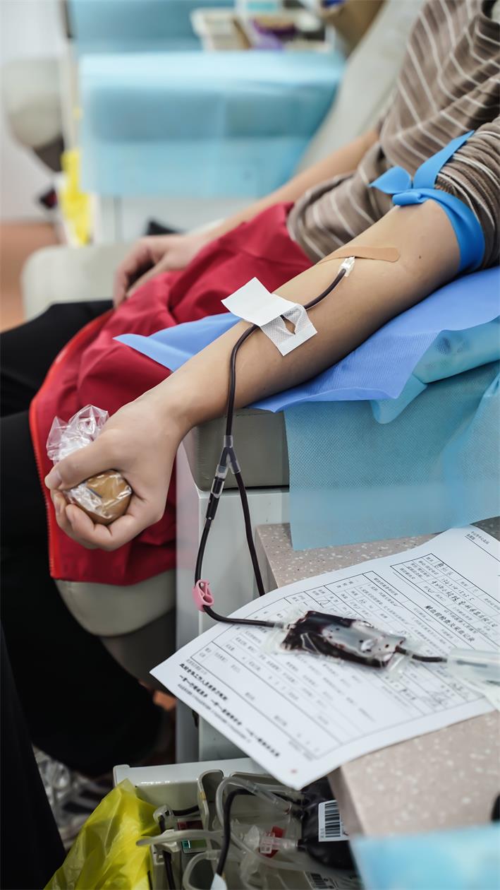 有的員工以前獻過血,顯得淡定。而有的員工則是第一次獻血,難免有些小緊張,經過醫護人員的鼓勵,身體漸漸放松下來。滿含愛的熱血緩緩流向采血袋,點亮生命的希望。
