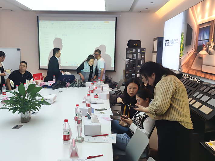 重慶市區域經理詹凡,宣布促銷政策。比如:贈予客戶豐富的物料包含雨傘、廣告衫等。李曉耀則給客戶作“家的智能開關售前,售中,售后”培訓。系統的課程讓客戶們學到實實在在有用的知識,有利于日后銷售工作的順利開展。