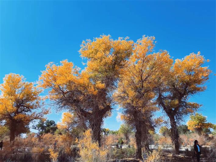 在這秋高氣爽的季節(jié)里,大家欣賞塔里木的原始胡楊林,呼吸新鮮空氣,心情舒暢!胡楊林在干旱的環(huán)境下茁壯成長(zhǎng),抵抗風(fēng)沙,讓大家感受到生命力的頑強(qiáng)。