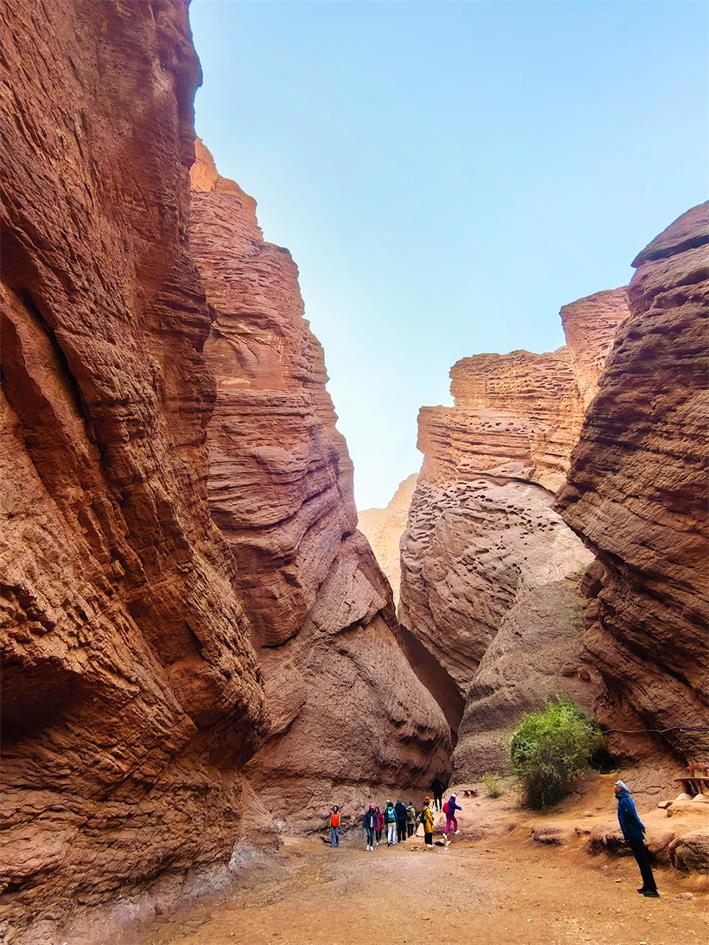 大峽谷位于天山山脈南麓,由紅褐色的山體群組成,峰回路轉(zhuǎn),怪石嶙峋,充滿(mǎn)了神秘的氣息。難得到此一游,大家合影留念。
