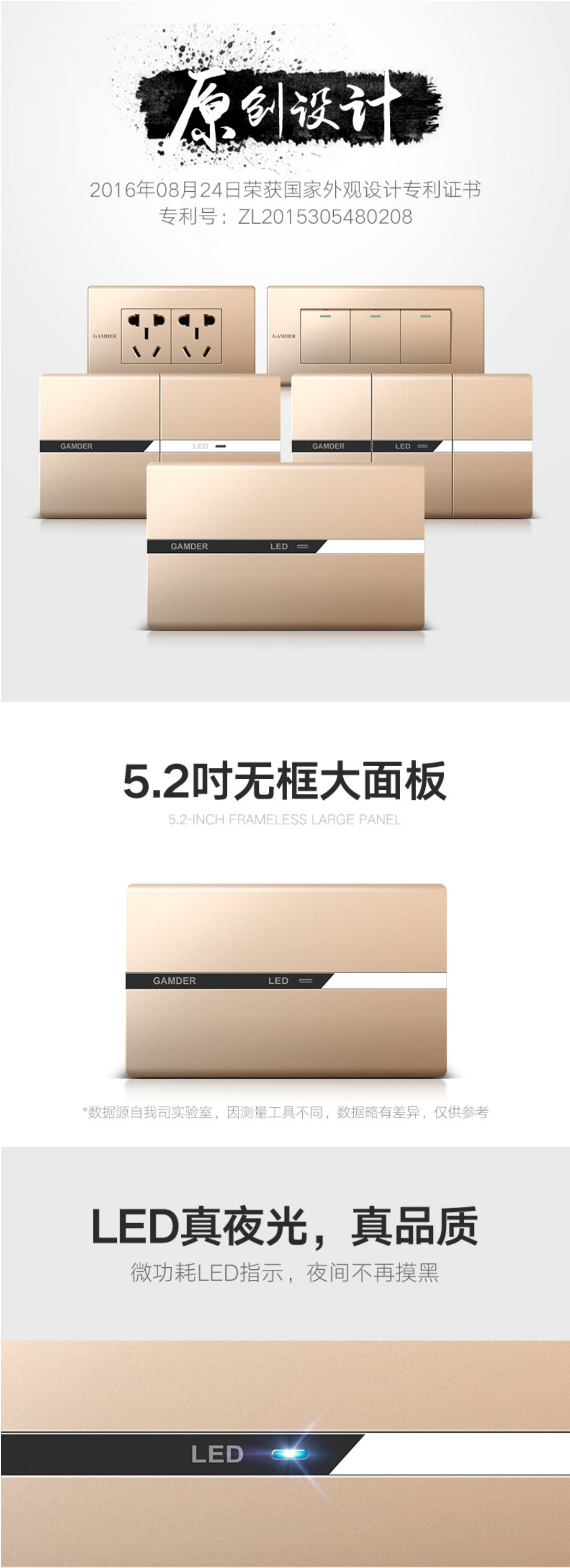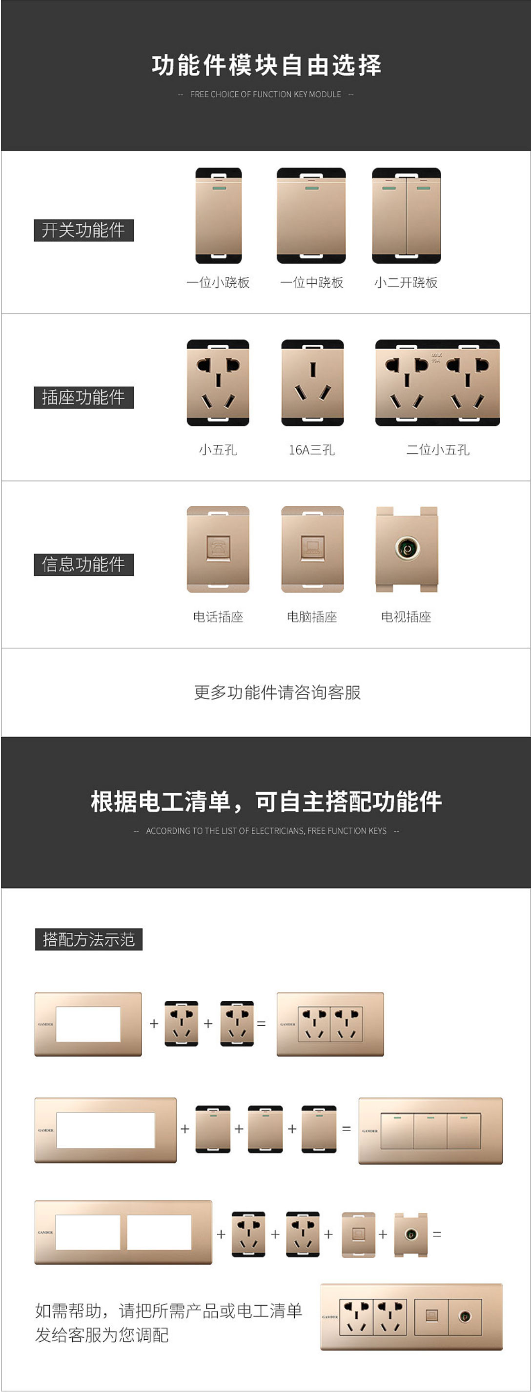 品牌: GAMDER/家的型號: JD-C6系列材質(zhì): PC顏色分類:香檳金電子電工產(chǎn)品類型: 118型