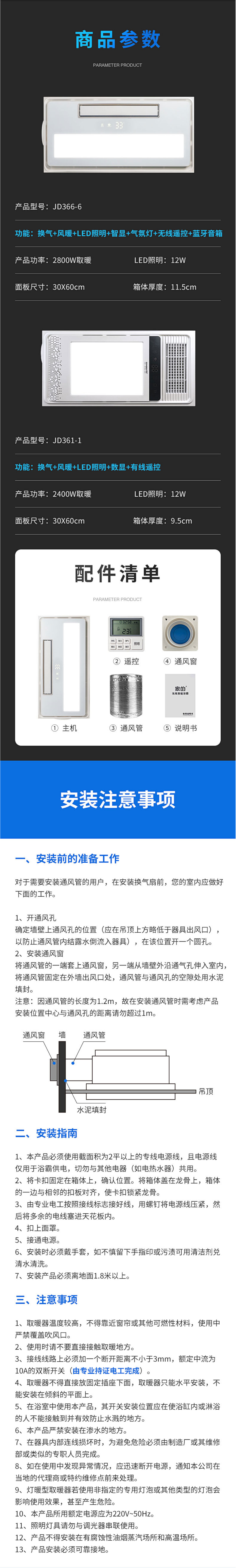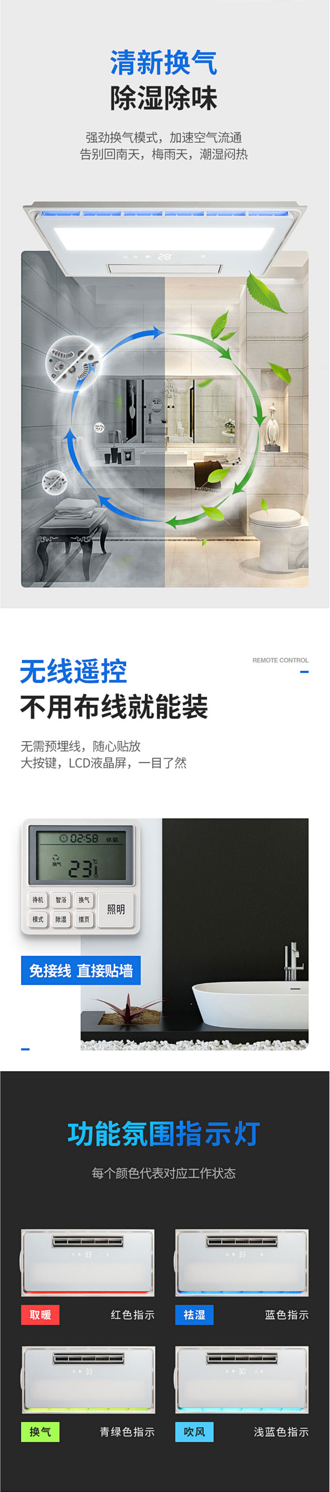 功能模塊:換氣+風(fēng)暖+LED照明+數(shù)顯+有線遙控