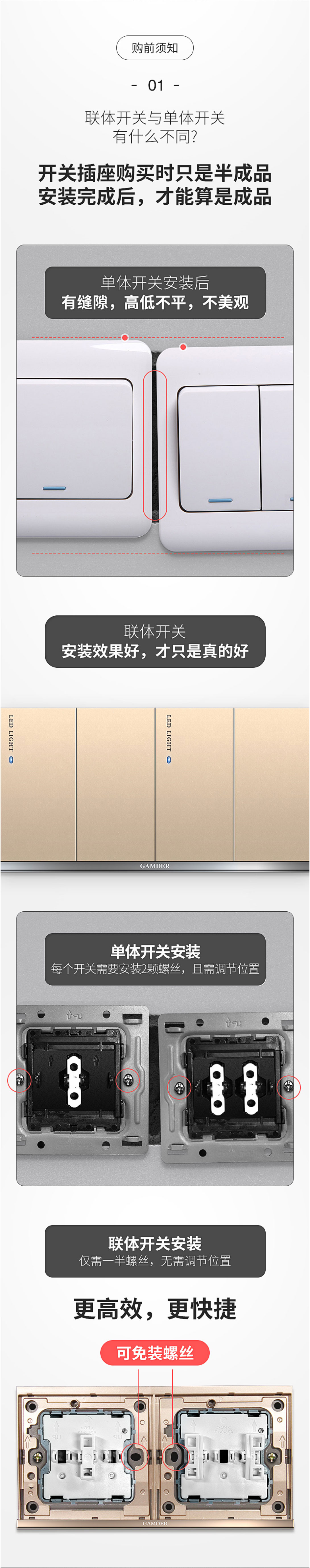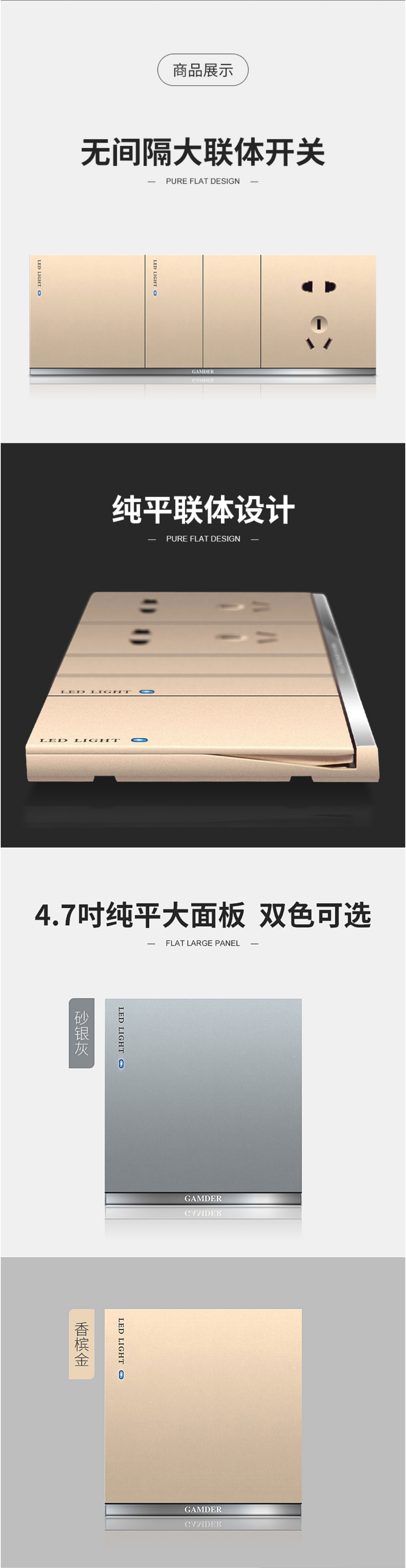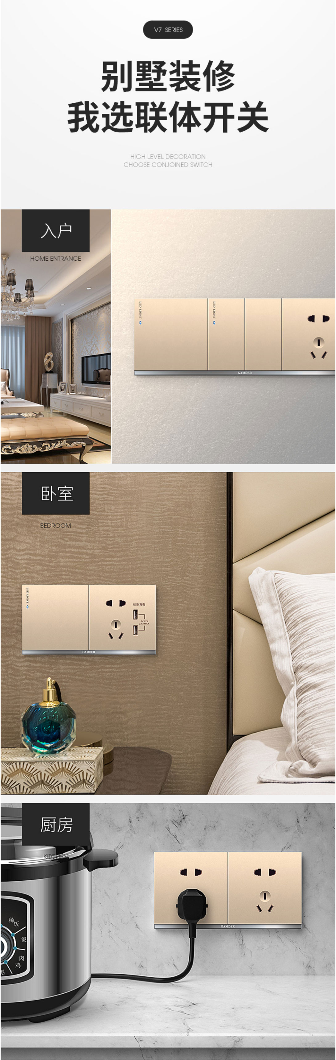 品牌: GAMDER/家的型號: JD-V7系列材質: PC顏色分類: 香檳金電子電工產品類型: 86型